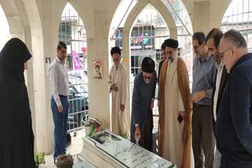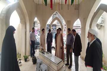 غبارروبی مزار شهید دانشکده علوم قرآنی آمل هم‌زمان با هفته دفاع مقدس